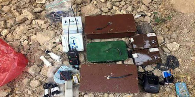 وذكر مراسل سانا في السويداء أنه بعد المتابعة والتحري داهمت الجهات المختصة أمس وكرا لمجموعة إرهابية تقوم بتصنيع العبوات الناسفة في ورشة للموبيليا في بلدة عتيل حيث كان الإرهابي ا.ق يستخدمها لصناعة العبوات