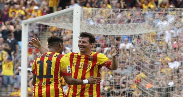 وسجل النجم البرازيلي نيمار الهدفين في الدقيقتين الـ79 و 84 بعد تمريرتين من اللاعب الأرجنتيني ليونيل ميسي الذي تعافى من إصابة في العضلات منعته من المشاركة مع منتخب بلاده في مباراة ودية ضد ألمانيا.
