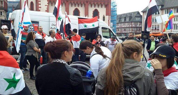 نظمت لجنة التضامن مع سورية في ألمانيا أمس مسيرة تضامنية تحت شعار ثلاث سنوات من الحرب ضد سورية وقف التدخل انطلقت من ساحة الت أوبر في فرانكفورت وجابت شوارع المدينة حتى ساحة رومر عبر خلالها المشاركون عن تضامنهم مع سورية وجيشها في محاربة الإرهاب.