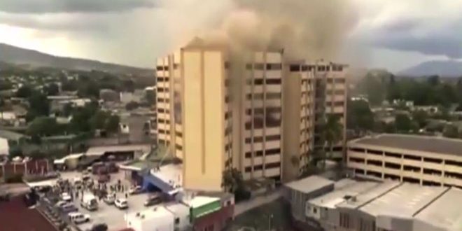 ونقلت رويترز عن كارلوس فوينتيس المتحدث باسم أجهزة الطوارئ قوله اليوم إن رجلاً توفي نتيجة إصابته بحروق واستنشاق الدخان في الطابق الخامس من المبنى المؤلف من تسعة طوابق الذي اندلع فيه الحريق كما أظهرت صور تلفزيونية شخصاً يقفز من الطابق العلوي للمبنى ويهوي بقوة على الأرض.