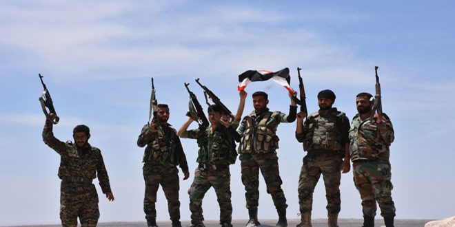 نفذت وحدات من الجيش العربي السوري عمليات نوعية ودقيقة في ريف حمص الشرقي استعادت خلالها السيطرة على قرية جباب حمد في حين قضى سلاح الجو على العديد من إرهابيي “داعش” في دير الزور ومحيطها ودمر عربات وآليات مدرعة لإرهابيي التنظيم التكفيري في ريف الرقة الغربي.