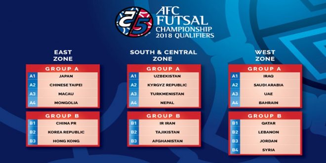 سحبت في مقر الاتحاد الآسيوي لكرة القدم في العاصمة الماليزية كوالالمبور قرعة تصفيات آسيا داخل الصالات المقررة في تشرين الأول والثاني القادمين والمؤهلة لنهائيات 2018.