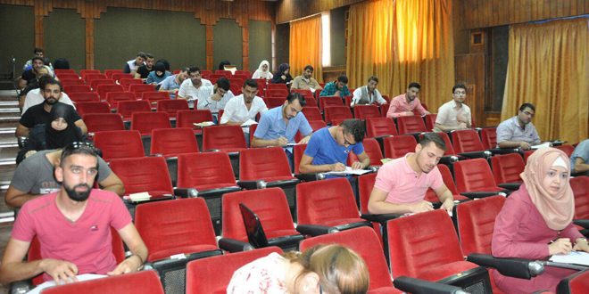 افتتح اليوم المعهد العالي للغات بجامعة حماة بإجراء امتحان لنحو 300 طالب وطالبة من حملة الإجارة الجامعية في قسم اللغة الانكليزية.