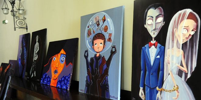 وفيما يخص معرض الفن التشكيلي بين مديره الفنان بشار شعبان أنه تضمن 12 لوحة لطلاب كلية الفنون الجميلة بدمشق تتحدث عن أفكار حملة السلام بأسلوب رمزي أو مباشر تم إنجازها خلال ورشة عمل اقيمت الاسبوع الماضي مؤكدا أهمية توظيف الفن في خدمة المجتمع وإيصال رسائل توعية لأفراده.