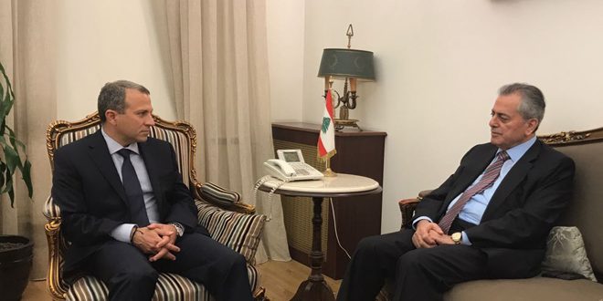 بحث وزير الخارجية والمغتربين اللبناني جبران باسيل اليوم مع سفير سورية في لبنان علي عبد الكريم الأوضاع في سورية ولبنان والعلاقات الثنائية.