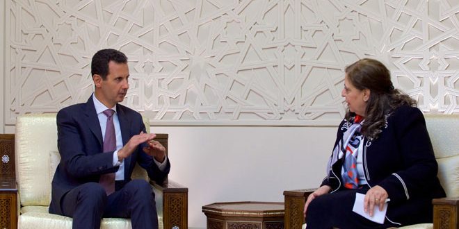 استقبل السيد الرئيس بشار الأسد اليوم آمنة الشماط رئيس الهيئة المركزية للرقابة والتفتيش.