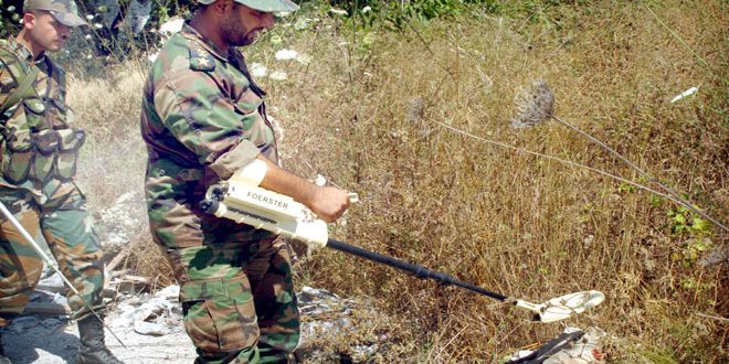 كاميرا سانا تواكب تفكيك خبراء الهندسة في الجيش للألغام بريف اللاذقية الشمالي