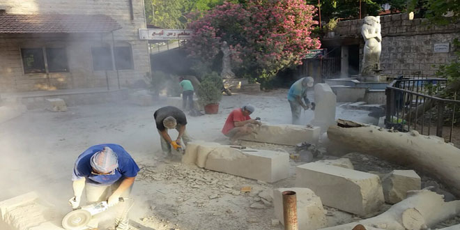 وكانت أولى فعاليات المهرجان انطلاق ملتقى النحت السنوي الذي يعد الأول من نوعه من خلال إدخال تجربة جديدة وهي النحت على الحجر الرملي بالطريقة اليدوية القديمة “المطرقة والإزميل فقط” ويستمر يومياً بمشاركة 15 نحاتاً من سورية ولبنان.