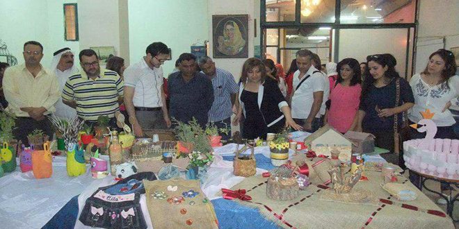 أعمال فنية متنوعة الشكل والمضمون ضمها المعرض البيئي الذي نظمه مكتب البيئة في سلمية التابع لمديرية البيئة في محافظة حماة اليوم بمناسبة اليوم العالمي للتصحر.