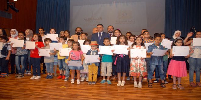 دمشق-سانا كرمت وزارة التربية الأطفال الفائزين في مسابقة الرسم بمشروع “ألوان وأفكار من أجل السلام …