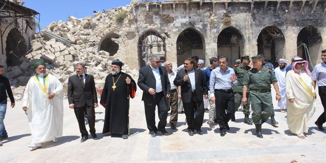 وقام وفد أهالي الحسكة برفقة محافظ حلب وأمين فرع الحزب بجولة شملت الجامع الأموي وكنيسة السريان الأرثوذكس في حي السليمانية وسوق التلل التجاري واطلعوا على حجم الدمار الذي الحقه الإرهاب بأحياء المدينة ومؤسساتها وأوابدها الأثرية.