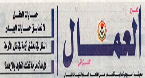 تضمن العدد الجديد من جريدة كفاح العمال الاشتراكي الصادرة عن اتحاد العمال اخبارا منوعة في الاقتصاد وقطاعات العمال إضافة إلى بعض الدراسات السياسية والفكرية والاراء التي تمثل انعكاسات الحرب الإرهابية على سورية.