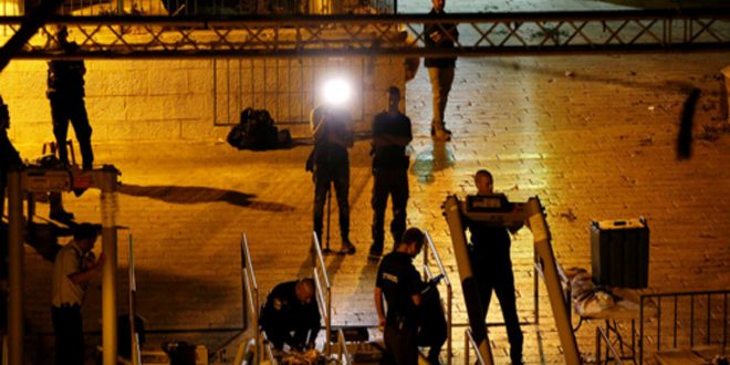 وذكرت وكالة الأنباء الفلسطينية وفا أن أبناء مدينة القدس المحتلة عبروا عن رفضهم للإجراءات التي اتخذتها سلطات الاحتلال الإسرائيلي في ساعة مبكرة من فجر اليوم عبر ازالتها البوابات الإلكترونية من أمام مداخل المسجد الأقصى المبارك من جهة باب الناظر “المجلس” وباب الأسباط وشروعها بتركيب جسور حديدية بالقرب من البوابات لحمل كاميرات “ذكية” بديلة للبوابات الإلكترونية التي رفضوها وقاوموها على مدى الأيام الماضية.
