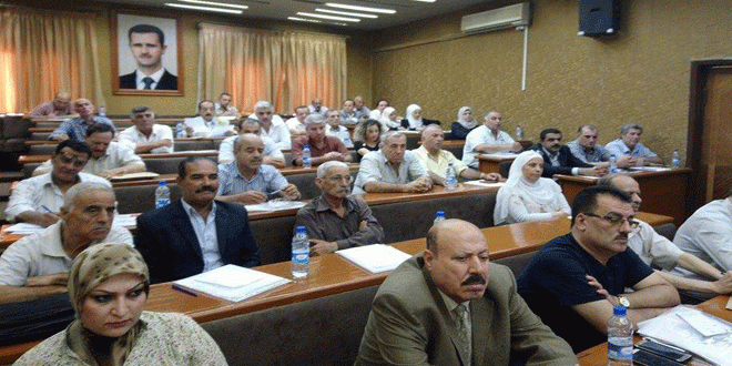 حضر الجلسة نائب رئيس المكتب التنفيذي المهندس راتب عدس ورئيس المجلس صالح بكرو وأعضاء المكتب التنفيذي.