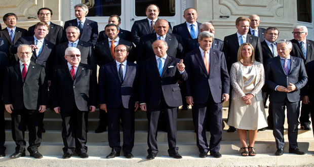تعهد المشاركون في المؤتمر الدولي حول أمن واستقرار العراق في باريس اليوم بدعم العراق في حربه ضد تنظيم “دولة العراق والشام” الإرهابي بـ “كل الوسائل الضرورية” وضمنها العسكرية بحسب البيان الختامي.