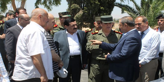 واطلع الوزير الشعار خلال تفقده مدينة المعارض وبحضور جميع الفعاليات والجهات المسؤولة على التحضيرات والإجراءات لتسهيل وصول المشاركين والزوار إلى أرض معرض دمشق الدولي وتعزيز المناخ الأمني المناسب لذلك.