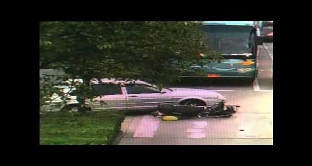 نجح مارة في مدينة شنغهاي الصينية في إنقاذ سيدة انحشرت تحت عجلات سيارة صدمتها حينما كانت تستقل سكوتر خاصا بها.
