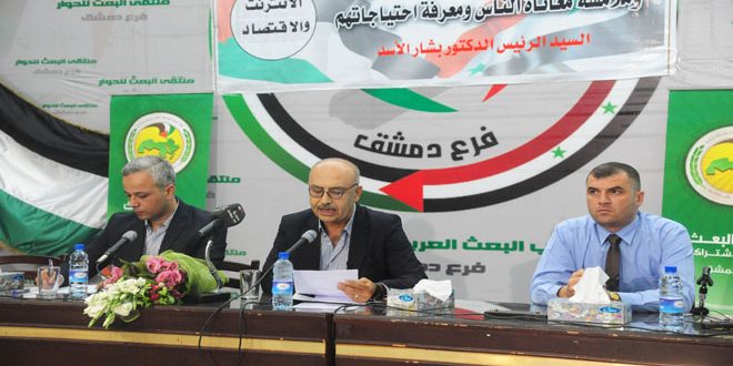تركزت مداخلات المشاركين في المنتدى الاقتصادي الفرعي الذي نظمته قيادة فرع دمشق لحزب البعث العربي الإشتراكي على أثر الأنترنت على الاقتصاد ومفهوم التسوق الإلكتروني.