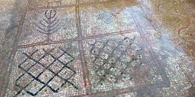 وبين حمود أن اللوحة جزء من أرضية إحدى قاعات أحد البيوت الدينية في الموقع يعود تاريخها إلى العصر البيزنطي القرن السادس للميلاد لافتا إلى