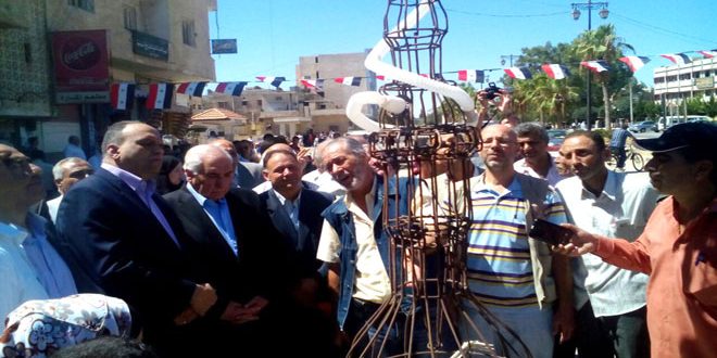 من جهته اشار محافظ درعا محمد خالد الهنوس في تصريح للصحفيين الى أن المعرض لفنان تشكيلي له تاريخ حافل على الارض صور مشاهد الحياة التي عاشها السوريين من خلال لوحات فنية استعمل في صناعتها بقايا القذائف والشظايا التي استهدف بها الإرهابيون المناطق الامنة لافتا الى أن هذا المعرض الذي يقام في الشارع دليل انتصار على الارهاب وداعميه وعودة الحياة الى ما كانت عليه.