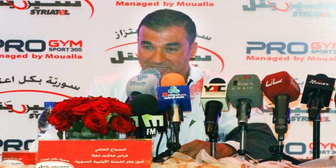 وقال معلا في مؤتمر صحفي عقد في مدينة الشباب بدمشق مساء اليوم “مشاركتي هي الأولى للسباحة السورية في بطولة فئة الماسترز التي تقام كل سنتين وستكون في سباق 3 كم في الحادي عشر من الشهر الجاري وتمثل هذه المشاركة تحديا خاصا لي لأني مبتعد منذ فترة ليست بالقصيرة عن البطولات والمشاركات الخارجية”.