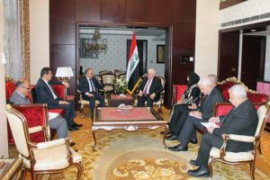 وكان المهندس خميس التقى صباح اليوم الرئيس العراقي فؤاد معصوم ناقلا إليه تهنئة الرئيس الأسد والشعب السوري بتحرير مدينة الموصل من سيطرة تنظيم “داعش” الإرهابي مؤكدا أن سورية والعراق تقفان في خندق واحد في مواجهة كل أشكال الإرهاب الذي يهدد شعوب المنطقة والعالم.