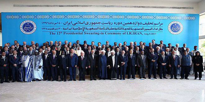 شارك رئيس مجلس الوزراء المهندس عماد خميس ممثلا للسيد الرئيس بشار الأسد في مراسم أداء اليمين الدستورية للرئيس الإيراني حسن روحاني لولاية ثانية والتي جرت اليوم بحضور وفود تمثل 105 دول ومنظمات وحركات المقاومة في لبنان وفلسطين.