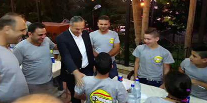 وتقديرا منه لأبناء الشهداء والجهود التي بذلها مدربوهم خلال المخيم أقام المحافظ مأدبة عشاء الليلة الماضية ببلودان مؤكدا أنه “لولا الدماء الزكية التي بذلها آباء هؤلاء الطلبة ودماء جميع شهدائنا الأبرار الذين استعذبوا الموت لتحيا سورية لما كنا موجودين هنا” لافتا إلى بطولات جيشنا الباسل في مواجهة الإرهاب.