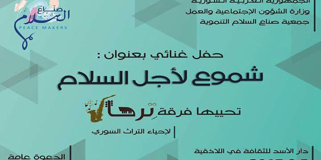رئيس مجلس إدارة جمعية صناع السلام الدكتورة لمى دريباتي أوضحت في تصريح لـ سانا أن الجمعية يقع عليها “مسؤولية نشر ثقافة السلام في المجتمع وتقبل الآخر” والحفلة التي قدمتها اليوم بالتعاون مع فرقة ترحال لإحياء التراث تصب في هذا الاتجاه باعتبار التراث السوري جزء من الهوية والأرضية المشتركة التي تجمع مختلف مكونات المجتمع.