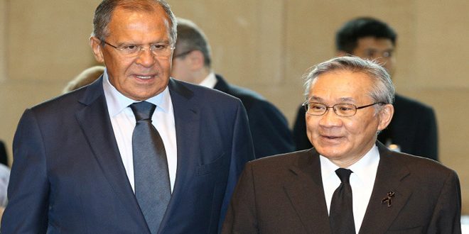 وقال لافروف في تصريح للصحفيين عقب لقاء نظيره التايلاندي دون براموت ويناي في بانكوك اليوم “إن روسيا وتايلاند أكدتا التشابه والتطابق في وجهات النظر بشأن القضايا الرئيسية المطروحة على جدول أعمال المجتمع الدولي” مشيراً إلى أنه بحث مع ويناي قضايا التعاون العسكري التقني.