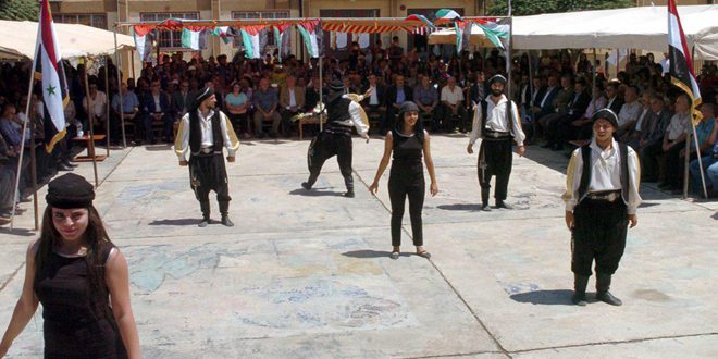 وتضمنت فعاليات الافتتاح التي أقيمت في كلية الفنون الجميلة الثانية بالسويداء فقرات فنية وغنائية راقصة قدمتها فرقة كاناثا التابعة لفرع اتحاد شبيبة الثورة بالسويداء .