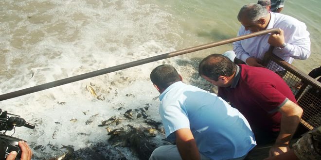 استزراع 125 الف اصبعية من أسماك/الكرب العام/في سد 16 تشرين باللاذقية