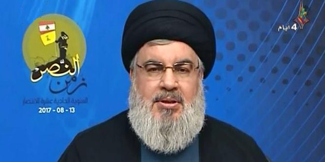 وخاطب السيد نصرالله بعض القوى السياسية اللبنانية التي لها ” موقف حاد” من سورية قائلا: ” المشروع الذي راهنتم عليه في سورية ومازلتم تراهنون عليه سقط أو يكاد ينتهي في السقوط والقرار بإنهاء تنظيم “داعش” الإرهابي نهائي ولن يجد التنظيم من يدافع عنه في هذا العالم بعد كل المجازر التي ارتكبها”.