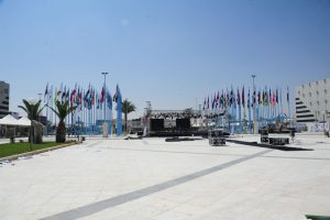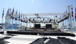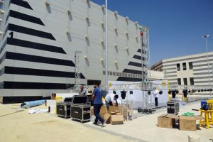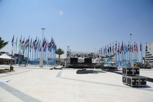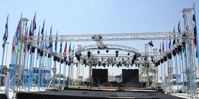 وانتهت المؤسسة من تحضير البحيرات الراقصة وتجهيزات مسرح المهرجان الفني ومسرح الطفل و 90 بالمئة من باقي الأعمال ويتم حالياً استكمال ادخال البضائع والمواد على أجنحة المشاركين التي انتهى معظمها.