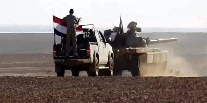 وقال المصدر في تصريح لـ سانا إن “وحدات من الجيش تقدمت في عملياتها ضد تنظيم “داعش” بعمق 25 كم بريف الرقة الجنوبي واحكمت سيطرتها على “تل الأصفر وضهور المملحة ورسم العمالي ورجم الشيح وسوح الديلج وقربة ووادي الأوج” بعد القضاء على آخر تجمعات الإرهابيين فيها.