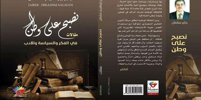 نصبح على وطن للأديب الدكتور جابر سلمان كتاب فيه مقالات أدبية جاءت بأشكال وأجناس مختلفة في الفكر والسياسة والأدب استندت في مضمونها على الحرب الإرهابية ضد سورية بأبعادها.