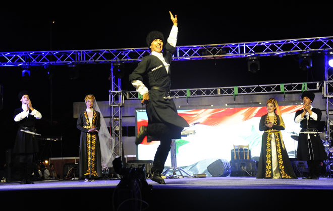 وفي تصريح لمندوبة سانا قال بيبرس رمضان عضو مجلس إدارة الجمعية ومسؤول الفرقة إن العرض الذي قدمته الفرقة اليوم على مسرح المعرض تضمن أربع رقصات هي “قافا” التي تمثل التعارف بين الشاب والصبية و”الودج” تشابك الأيدي و”الششن” التي تعني الفروسية وتعبر عن قوة الشباب والتضحية وأخير رقصة “القامات” أي اللعب بالسيف من خلال الرقص بتكتيك عال وأداء رجولي.
