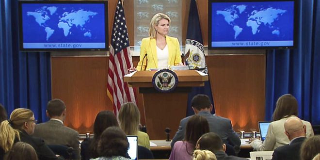 أعلنت المتحدثة باسم وزارة الخارجية الأمريكية هيذر نويرت عدم وجود نية لدى الولايات المتحدة للبقاء في سورية بعد هزيمة تنظيم “داعش” مشيرة إلى رغبة واشنطن بأن يحكم الشعب السوري بلاده وليس أحدا غيره.