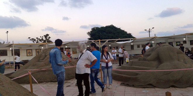أصوات شبابية شجية غنت التراث الفلكلوري السوري معلنة ختام فعاليات ملتقى النحت على الرمل الذي استمر لمدة اسبوع استطاع خلاله نخبة من الفنانين السوريين ترجمة أفكارهم ونقلها عبر الرمال بأسلوب فني تحدى صعوبات التعاطي مع هذه المادة التي يكتشفها بعضهم للمرة الأولى.