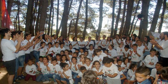 اختتم مخيم “راية الشهيد” فعالياته اليوم بتقديم فقرات فنية غنائية ولوحات راقصة تعبر عن الاعتزاز بالوطن وبطولات الجيش العربي السوري ورسومات وأعمال فنية يدوية من وحي الطبيعة تحاكي وتجسد محبة أبناء سورية لوطنهم وتؤءكد تمسكهم به.