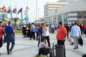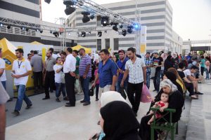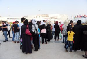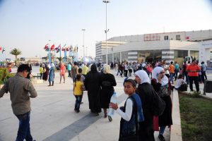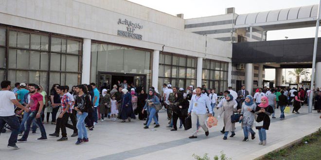 توافد آلاف السوريين إلى مدينة المعارض لليوم الرابع منذ الساعة الخامسة مساء لحضور فعاليات الدورة التاسعة والخمسين لمعرض دمشق الدولي الثقافية والفنية والاقتصادية والترفيهية المخصصة للأطفال.
