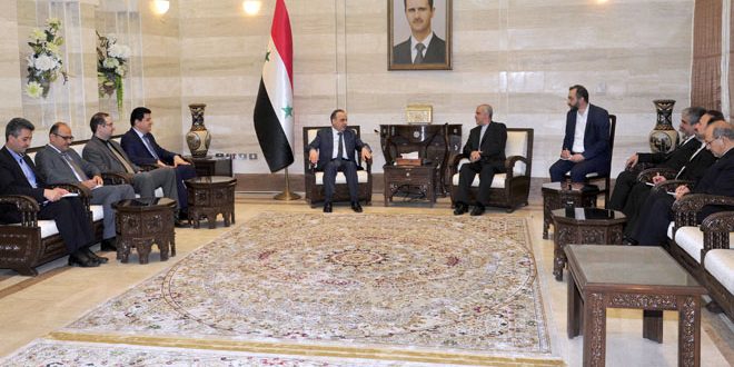 التقى رئيس مجلس الوزراء المهندس عماد خميس اليوم مستشار النائب الأول للرئيس الإيراني رئيس لجنة تنمية العلاقات الاقتصادية بين سورية وإيران سعيد أوحدي والوفد المرافق له.