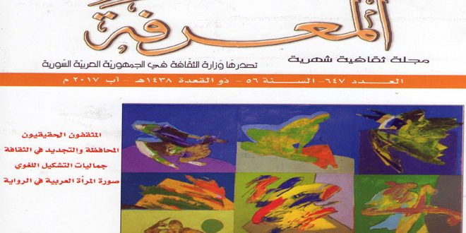 دراسات وأبحاث عن جماليات التشكيل اللغوي والتجديد في الثقافة وقصة العمارة في دمشق القديمة جديد مجلة المعرفة الثقافية الشهرية الصادرة عن وزارة الثقافة إضافة إلى كتاب المعرفة الشهري الذي جاء بعنوان “اللؤلؤة” لـ جون شتاينبيك الروائي الأمريكي الشهير الذي تعتبر رواياته من كلاسيكيات الروايات في القرن العشرين بسبب ملحميتها وواقعيتها.
