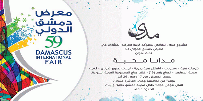 يشار الى أن “مدى الثقافي” هو مشروع تطوعي يهتم بتفعيل دور الثقافة في المجتمع السوري وتجميع الطاقات الشابة واستقطابها وبلورة طاقاتها وتجميعها ضمن مشروع ثقافي هادف ومنظم يؤكد على أصالة الهوية الحضارية السورية.