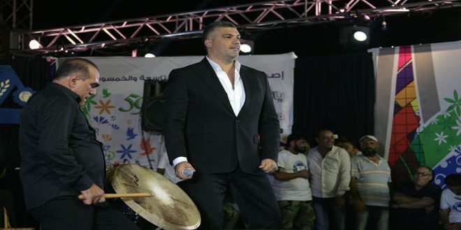 وحيا كرم الجمهور السوري وتمنى لسورية دوام الأمان والاستقرار وعبرعن محبته الكبيرة لسورية وجيشها وقدم مجموعة من الأغاني التي تحيي صمود سورية ونضالها.