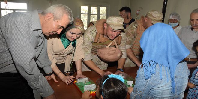 وخلال الزيارة قام الجانب الروسي بتوزيع الهدايا على جميع الأطفال المرضى كما شاركهم في بعض الالعاب في إطار الدعم النفسي لهم.