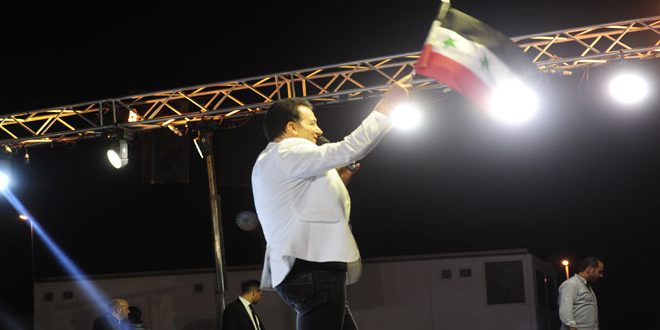 “أي شيء آخذه من سورية لا أعيده إلا قلبي أتركه فيها” هكذا بدأ النجم اللبناني محمد اسكندر مساء اليوم على المسرح المكشوف في مدينة المعارض ضمن ثامن أيام الفعاليات الفنية المرافقة لمعرض دمشق الدولي 59.