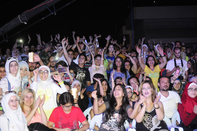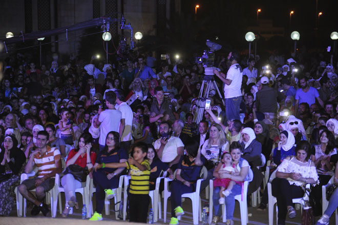 وتفاعل الجمهور مع أغاني اسكندر المشهورة فغنى معه “جمهورية قلبي وغرفة عمليات والعالم جنت وبلوزتك الحمرا” والأخيرة أضاف لها مقاطع تغنى خلالها بانتصار سورية بمعرض دمشق الدولي ليهبط اسكندر إلى أرض المسرح مشاركا الجمهور في الرقص والدبكة ليغني هوارة شدت كلماتها بأحياء دمشق وبمناطق سورية وأغنية “يا سورية عزك دام” موجها عبرها التحية لروح الفنان اللبناني الراحل سمير يزبك.