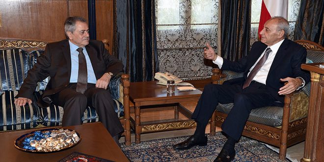 استعرض رئيس مجلس النواب اللبناني نبيه بري اليوم مع سفير سورية في لبنان علي عبد الكريم التطورات الراهنة في سورية ولبنان.