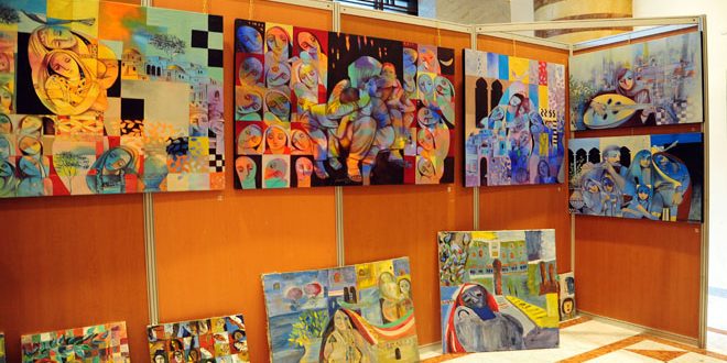 وتضمن المعرض نحو أربعين لوحة بتقنية الألوان الزيتية ومن مختلف الأحجام وبأسلوب تعبيري خاص عكس بصمة الفنان من خلال التكوينات المتداخلة مع كثير من الشفافية والحساسية اللونية التي طغى عليها الأزرق وعكست حالة الحلم الجميل الذي لم يخل من مسحة الحزن في ملامح بطلات اللوحات اللواتي مثلن أم الشهيد والحبيبة الحالمة باللقاء والسيدة مريم العذراء إلى جانب عبق تكوينات الياسمين الدمشقي في رسالة حب وسلام لكل سورية.
